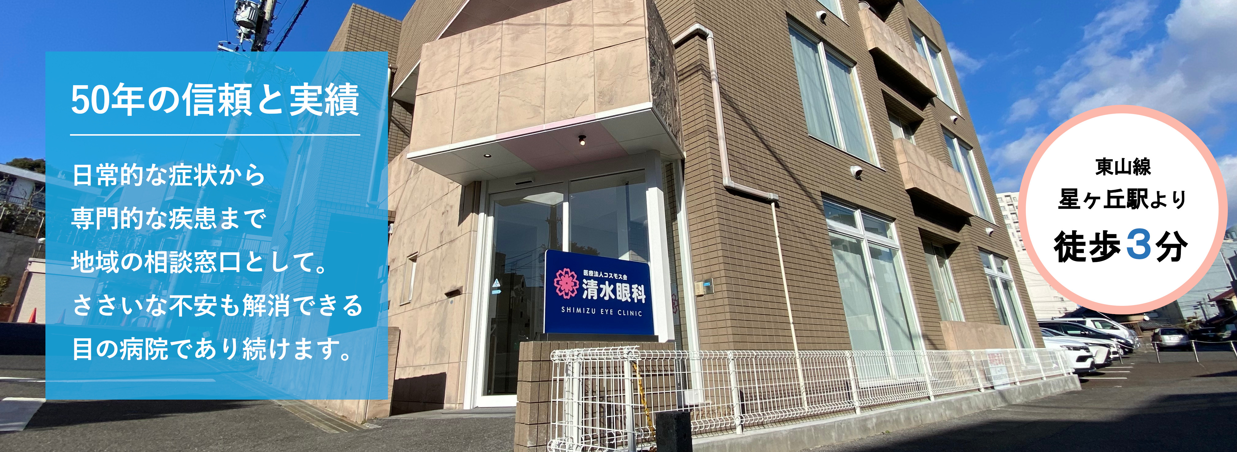 清水眼科は星ヶ丘に開院して50年余り、地域のみなさまに支えられ、多くの患者様に信頼・ご支持をいただいてまいりました。