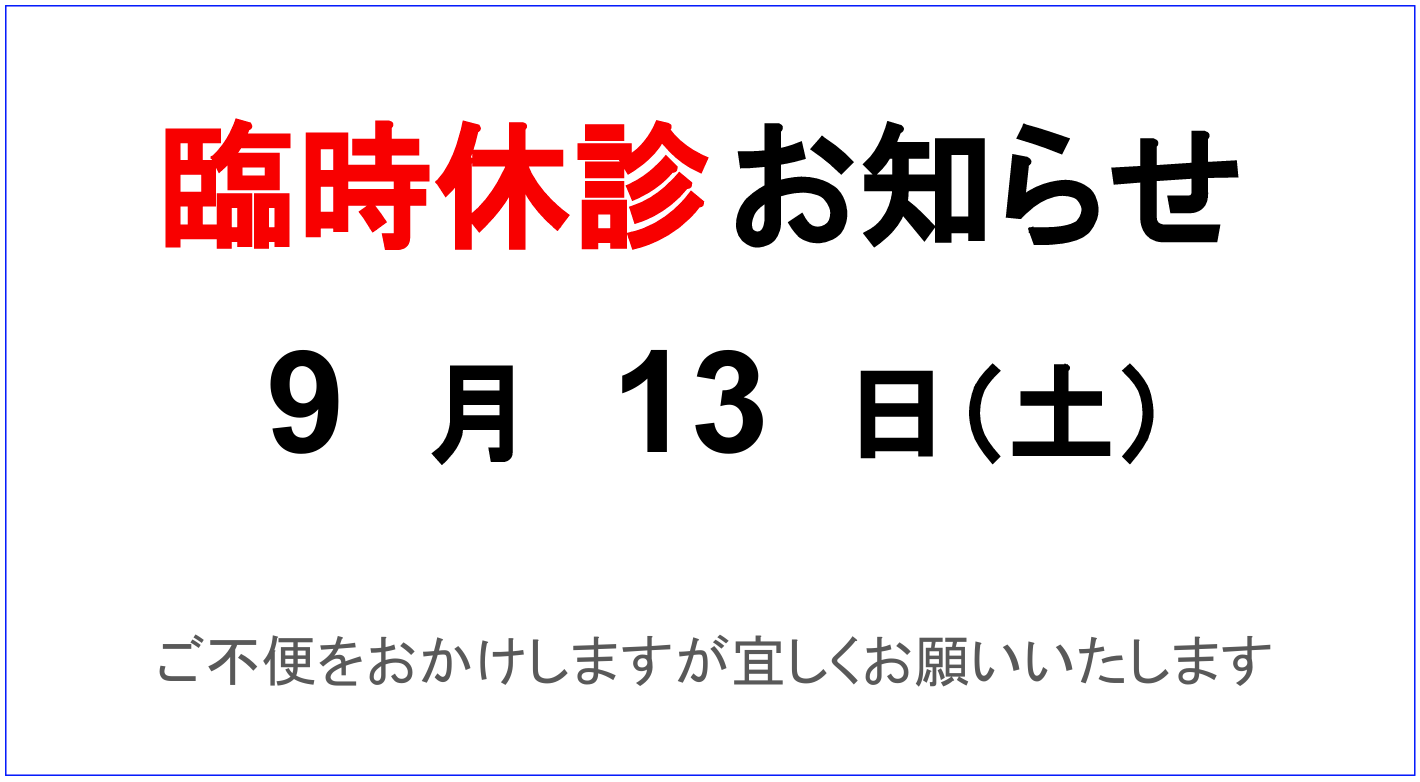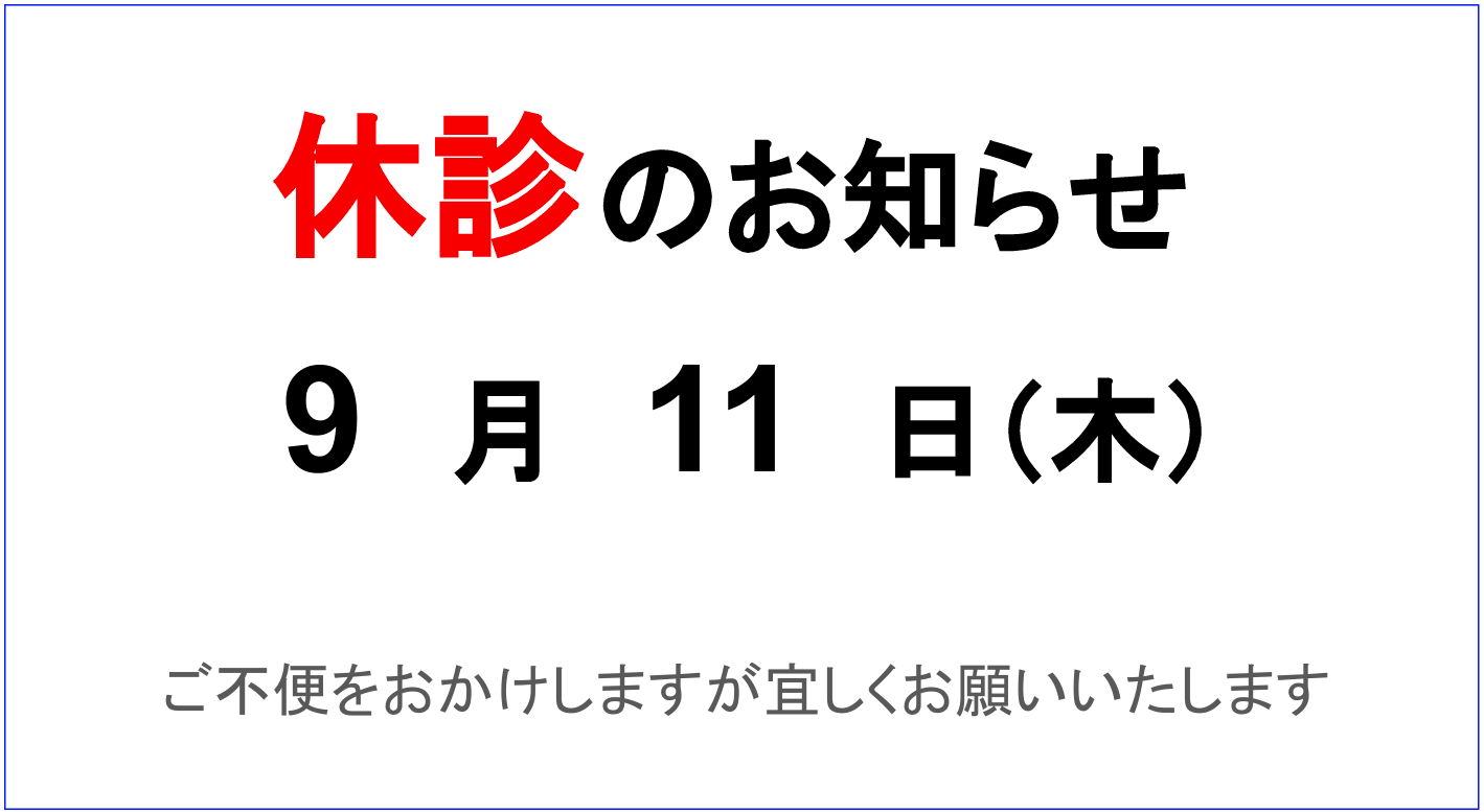 2025年9月11日(木)、9月13日(土)は休診となります。