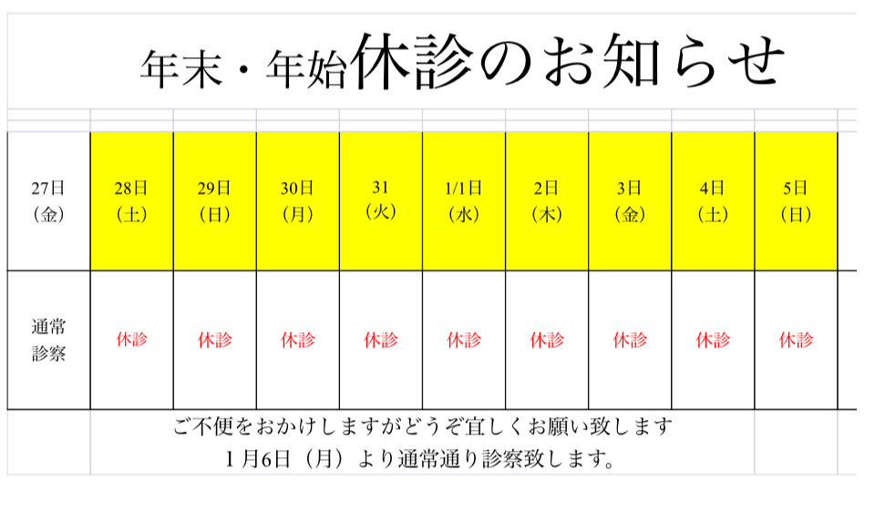 年末・年始休診のお知らせ