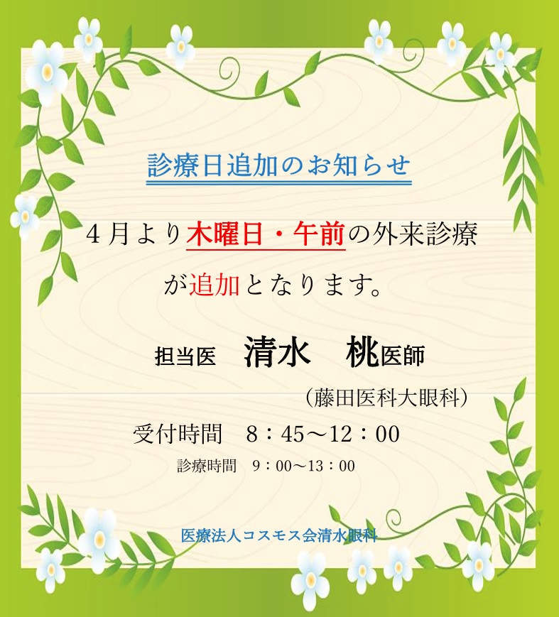 診療日追加のお知らせ